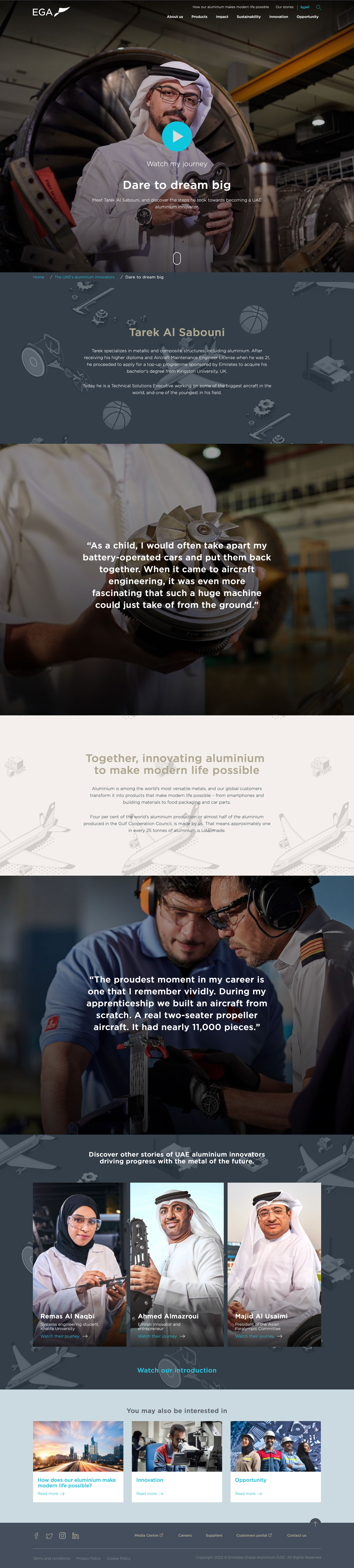 Making Modern Life Possible is a concept to take the raw product that Emirates Global Aluminium produce and to insert it into our everyday lives. To show the world that virtually every day Aluminium effects our lives and makes modern life possible. EGA is the world's largest 'premium aluminium' producer and the biggest industrial company in the UAE outside oil and gas.