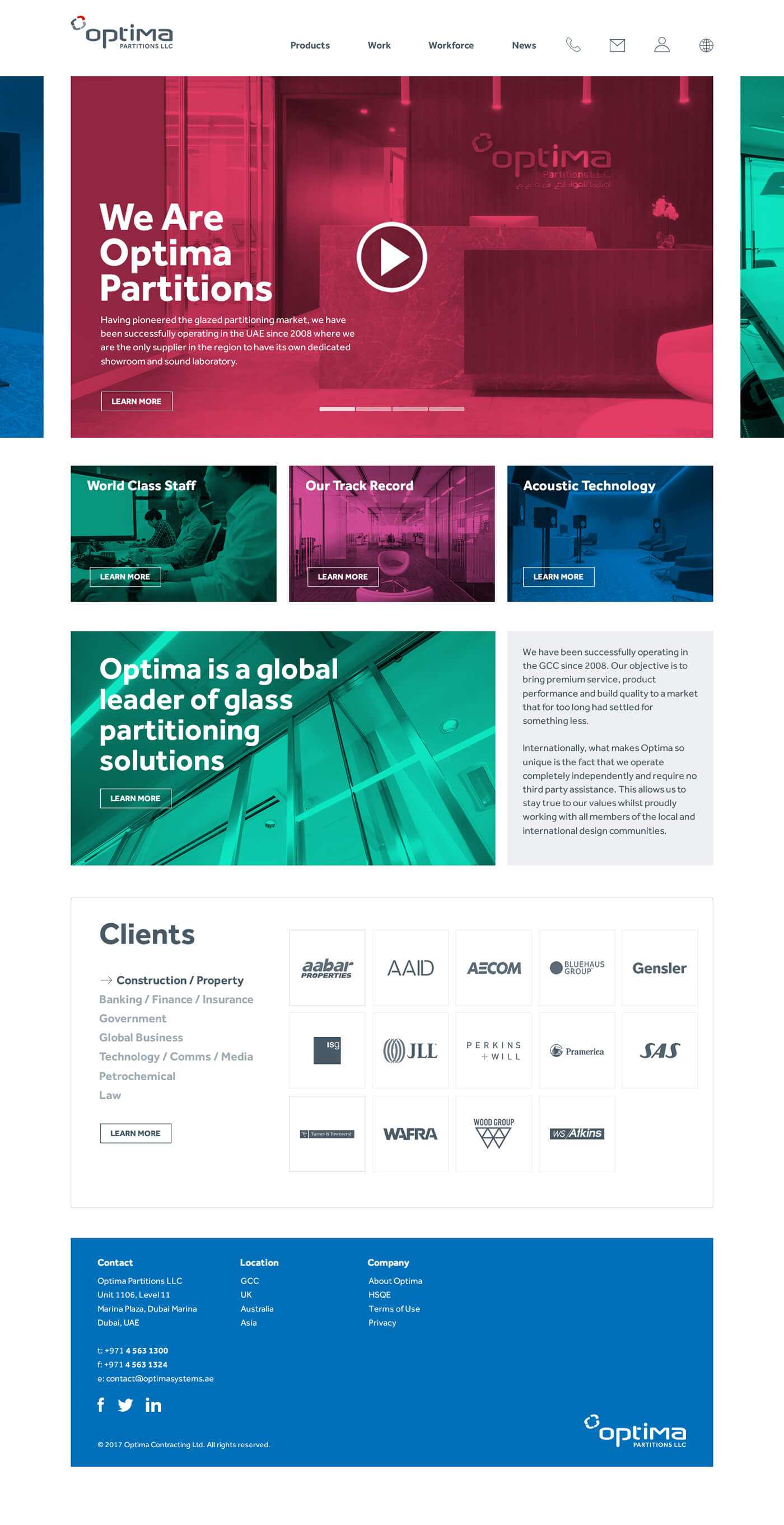 Pioneers in the glazed partitioning market, Optima Partitions have successfully operated in the UAE since 2008. They are the only supplier in the region to have their own dedicated showroom and sound laboratory.